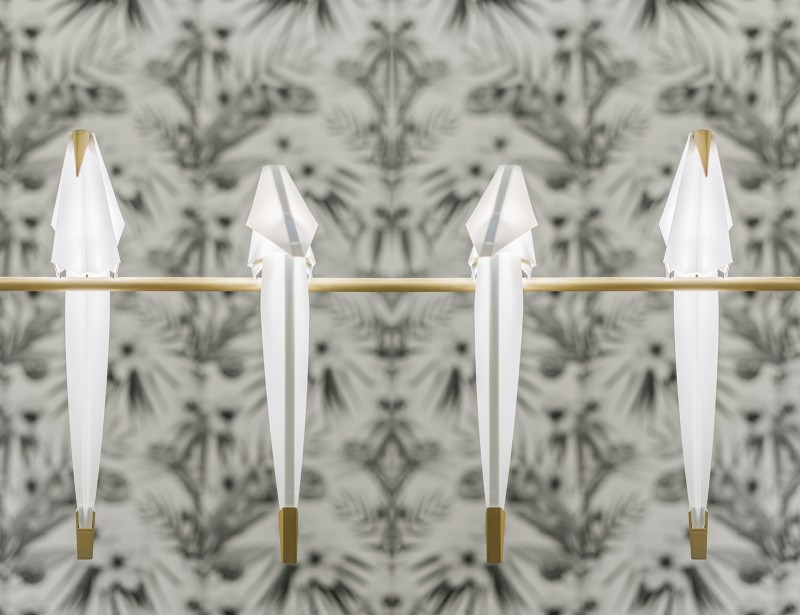 There are four columns set around the central island and estudi{H}ac has turned them into red and white, like four giant sticks of candy.