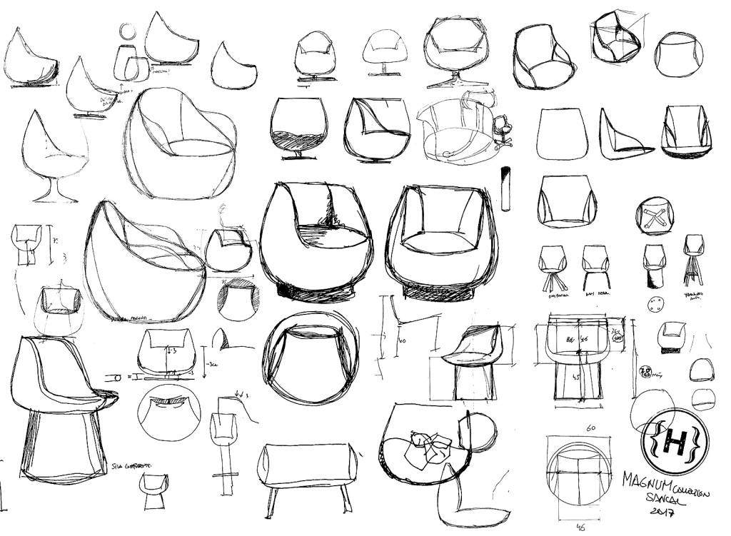 El suave giro que tiene la butaca recuerda el carácter elegante del movimiento del coñac dentro de la copa, lo cual permite dar una comodidad añadida a la pieza.